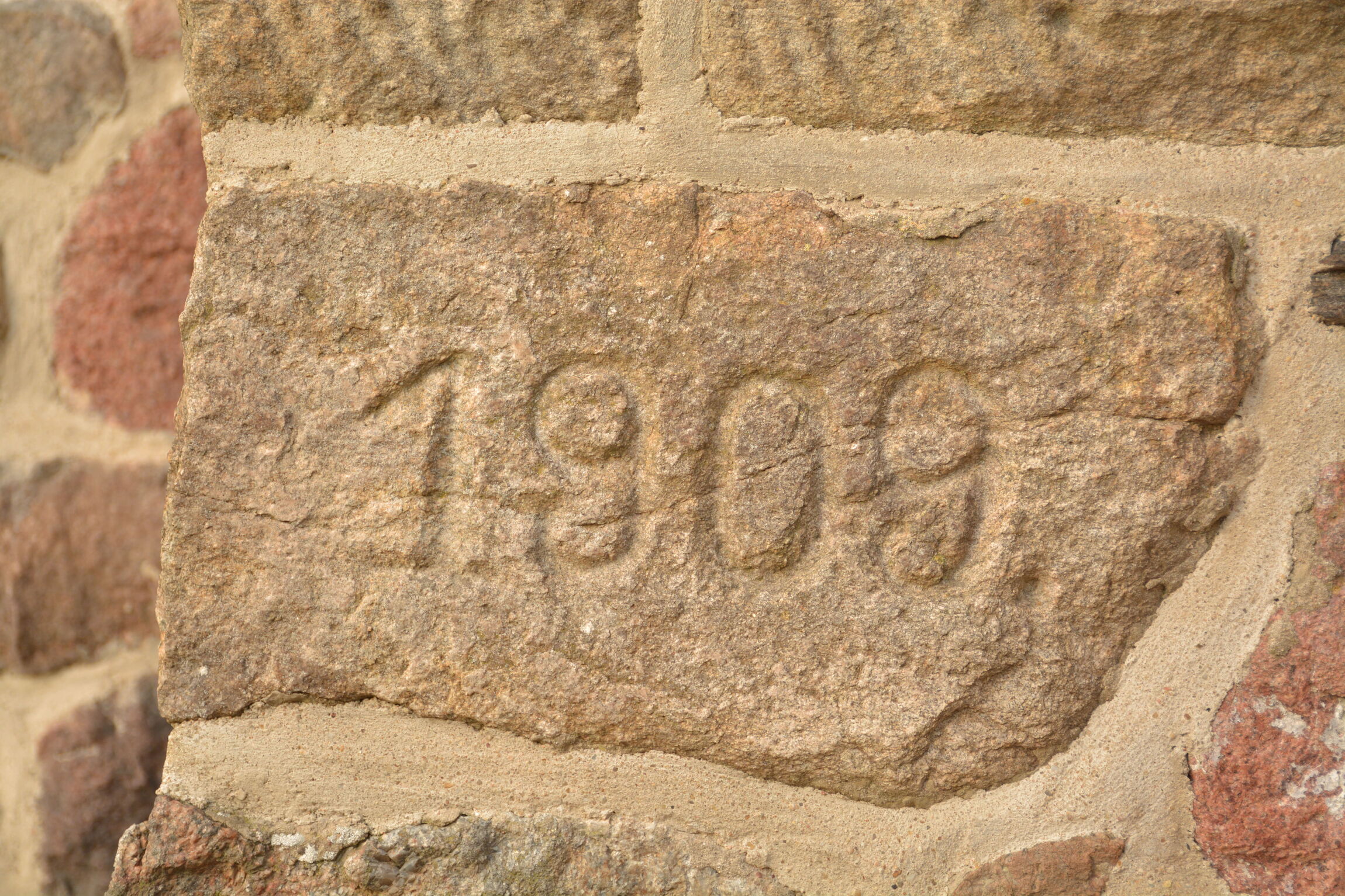 Vom „roten Platz“ kommend, entlang der Giebelfront des Gebäudes „Bäcker seit 1900“ schreitend, erreicht man, wenn man links und rechts die ca. 10 bis 12 Meter hohen Lebensbäume vorbeiziehen lässt, nach wenigen Schritten das Ziel. Unmittelbar neben der Sakristeitür erblickt man eine in einen Granitstein gehauene Zahl.